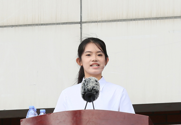 在校生代表、外国语学院本科生尹怡霏作发言