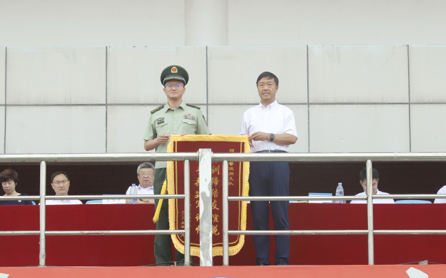 优异的军训成绩,源于同学们的刻苦训练,更得益于武警滨州支队官兵的出色工作和无私奉献。为表达诚挚谢意,李伟年代表学校向武警滨州支队赠送锦旗。